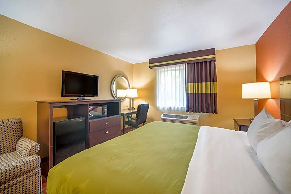 A microwave and fridge are included in this room.